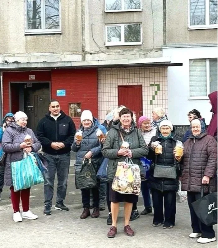 For the Easter holiday weekend, the team delivered 900 paski (Easter cakes) to elderly people in villages near Kharkiv.