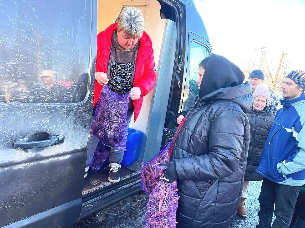 Vitaliy Z. (Kharkiv): delivered 3 tons of humanitarian kits, clothes, medicine, and animal feed to Shabelkivka, Kramatorsk District. Distributed 500 loaves of “Victory” bread in Mala Taranivka, also in the Kramatorsk District. The bread recipients had to be broken up into 2 groups for safety reasons.