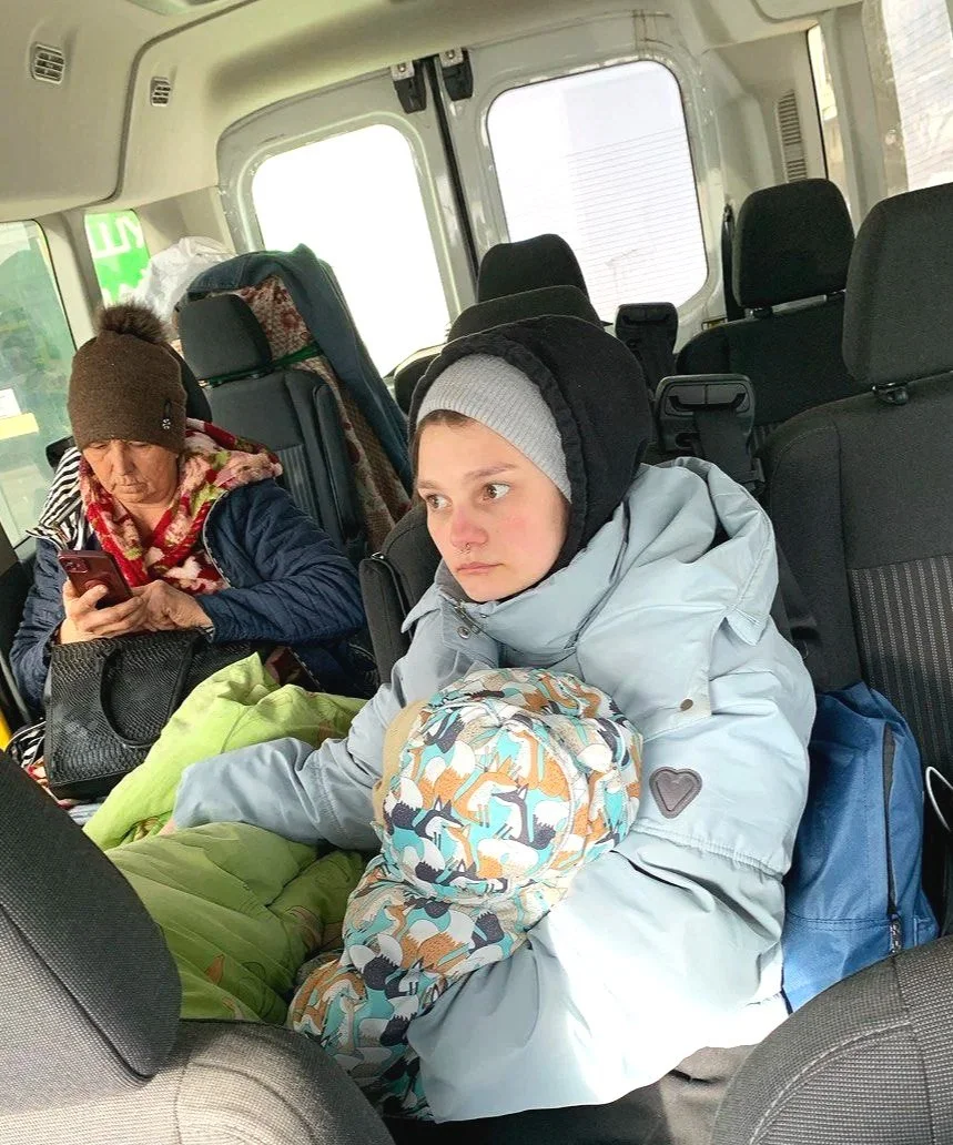 The evacuation team responded the next day. The driver had to carry Halyna into the car in his arms while Kateryna held her mother's leg. To reduce the risk of another drone attack, the driver moved through Druzhkivka with aggressive speed. The car swayed violently, throwing Halyna from side to side as Kateryna fought to keep the leg and cast in position. Despite the pain, Halyna held on, even attempting to joke during the long road to Kharkiv. At the final transfer, the driver carried her on his back to the waiting ambulance.